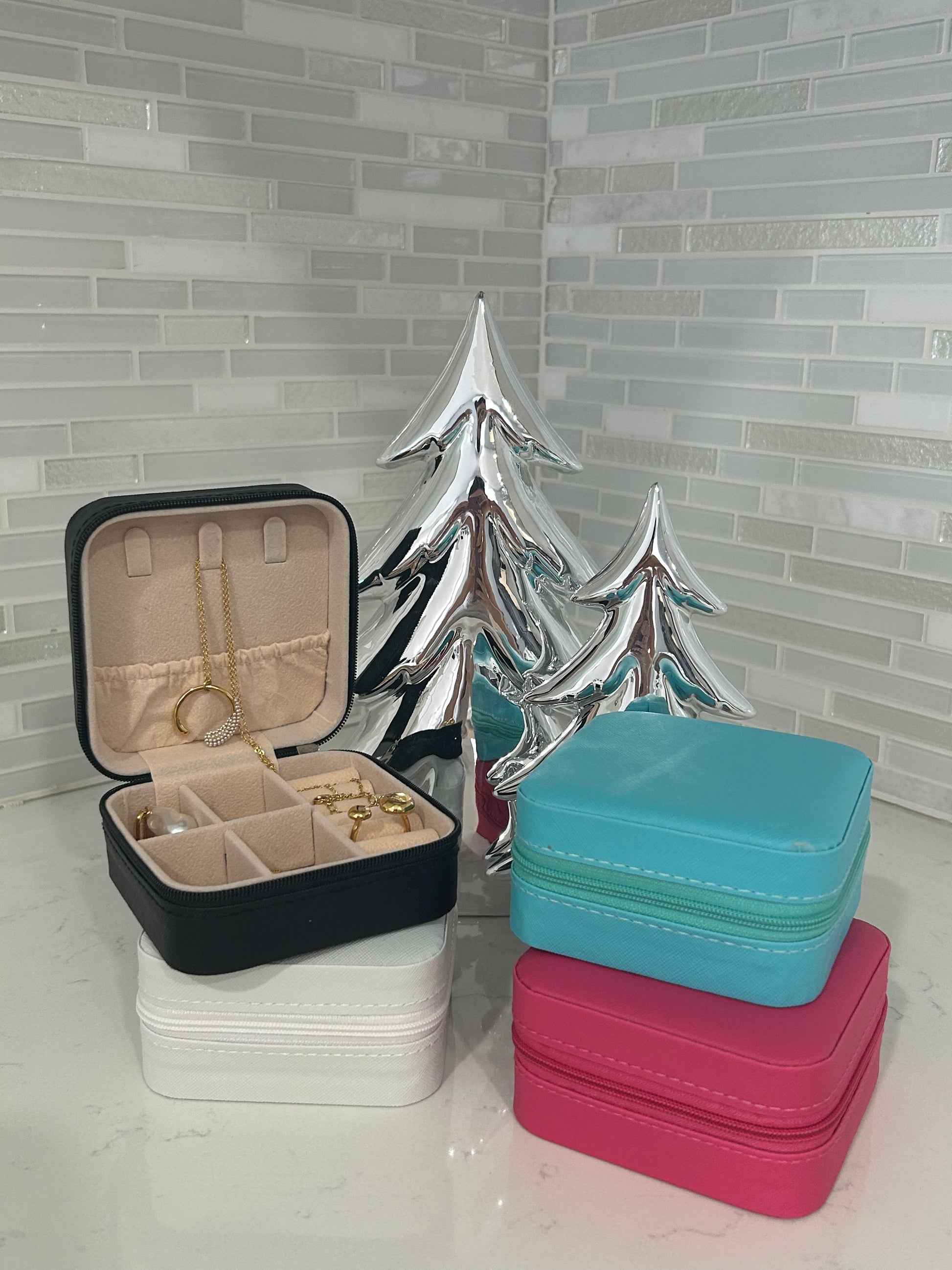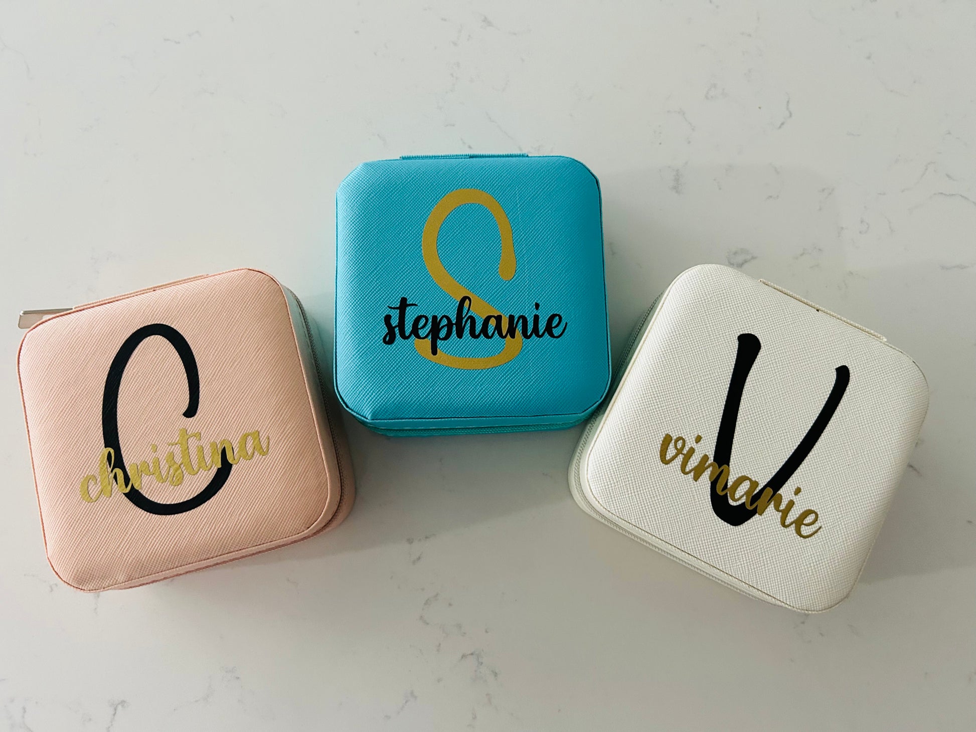 You can have your jewelry organized while traveling with this cute case. It can also be the perfect gift for a family member, friend, or for your bridesmaids. Personalize it with a name or initials.